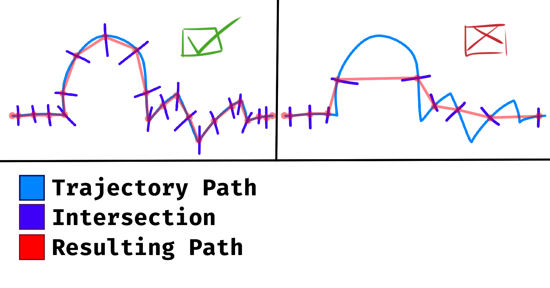 It's a good practice to always draw intersection on spots where sharp turn (eg: before/after turning, middle of the rotation, etc) is encountered. This is to ensure that object doesn't skip over certain path.